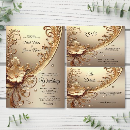 Golden Ornate Floral Rehearsal Dinner 招待状