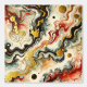 Ein abstraktes Gemälde mit goldenen Flüssen, die sich durch die Farben Weiß, Rot, Blau und Schwarz schlängeln. Die dynamischen Muster entstehen durch die Technik des Fluid Paintings.