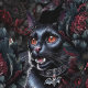 Gothic Black Cat & Dark Flowers Pattern 壁紙