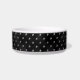 This gothic and minimalist dog feeding bowl for food or water features a pattern with mini skulls on a black background. Add your pet’s name for a one-of-a-kind ceramic dish that’s both microwave and dishwasher-safe. Whether you’re decorating for Halloween or gifting a new puppy owner, this USA-made dish brings festive charm to every mealtime. Available in two sizes: medium (25oz) and large (40oz), for kittens to adult felines. Available in two sizes, the medium one (25oz) is ideal for small to medium dogs like French Bulldogs, Shih Tzus, Boston Terriers, Pugs, and Cocker Spaniels. The large one (40oz) suits medium to large breeds like Labradors, Boxers, Bulldogs, and Golden Retrievers.