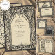 Embrace a dark romantic aesthetic with this gothic ornate parchment vintage wedding photo save the date card design. Featuring an antique parchment background and intricate black scrollwork, it's perfect for a dramatic evening ceremony. This bold look offers a timeless, Victorian feel for your unique day. Created by Simply Farmhouse Press.