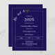 A modern and stylish dark blue and white invitation for a graduation party for a guy. Text: He did it. Decorated with a black graduation cap. Personalize and add a name and the details.