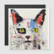 A slick city cat in a blazer with a fierce grin and wide eyes, painted in raw strokes and street art energy.