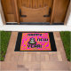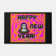 オレンジ色とピンク色のデザインを持つグレーのエイリアンの私の新年のスケッチを賞賛することができ、文字は言う、"Happy New Year! 私はこのスケッチを呼び、"Grays New Year Wishes,"このドアマットに追加された(24" x 36" / 61 cm x 91 cm)誰か希望する、"Happy New Year"。