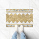 Greek Meander - Greek Key White Marble and Gold ドアマット