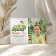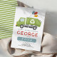 Thank guests for attending your child’s "Trash Bash" party with this cute garbage truck birthday thank you card. Featuring a garbage truck vehicle illustration with birthday balloons, space to andd an photo, and bold green stripes on the back. Ideal for recycling, eco-friendly, transportation, or green vehicle-themed parties, and easily personalized with your thank you message.