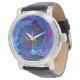 Groovy抽象芸術レトロブルーとパープルスワール 腕時計