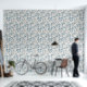 Baby boho blue floral seamless pattern wallpaper; great addition to any infant or child's bedroom or other.