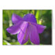 Grusskarte mit lila Glockenblumenblüte, bei der man den weiss-orangen Blütenstempel im Kelch sieht. Aufschrift auf der Rückseite: have a wonderful day. Die beiden Innenseite der Karte sind blanko.