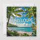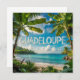 Découvrez cette magnifique illustration aquarelle de la Guadeloupe, capturant la beauté luxuriante de l'île. Le design met en scène des paysages tropicaux vibrants, avec des palmiers imposants, des feuilles de bananier luxuriantes, une plage de sable fin, une mer turquoise étincelante et des montagnes verdoyantes en arrière-plan. Le mot 'GUADELOUPE' est mis en évidence en lettres blanches, ajoutant une touche de souvenir de voyage classique. Parfait pour les amoureux de la nature, les voyageurs ou ceux qui rêvent des Caraïbes. Idéal pour personnaliser des affiches, des t-shirts, des sacs fourre-tout, des tasses ou des cartes postales. Apportez une touche d'évasion tropicale à votre quotidien.