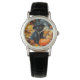 Watch featuring an adorable black cat wearing a witch’s hat! This little cutie poses with a pumpkin. Autumn leaves carpet the forest floor. A purr-fect gift for Halloween celebrations!