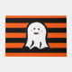 Halloween Ghost on Black and Orange Stripes ドアマット