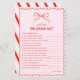 Add cheerful seasonal fun to your celebration with this red and pink hand drawn bow What Did the Groom Say game, perfect for a Christmas bridal shower, winter wedding shower, or festive holiday gathering. A cute addition to a merry little bridal shower, this guessing game brings lots of laughs while adding warm, cozy charm. Ideal for winter brides, holiday parties, and engagement events looking for a playful, interactive activity guests will love.