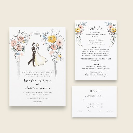 Hand Painted Garden Floral Wedding 招待状ベリーバンド