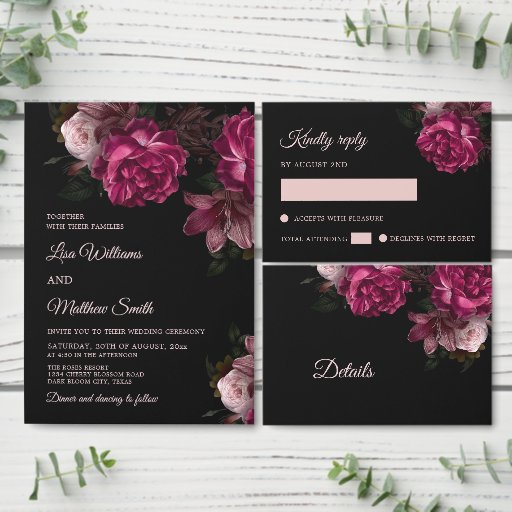 Hand Painted Roses Dark Moody Floral Wedding テーブルナンバー