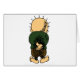 姿は1973年からの視聴者に戻って彼の回し、彼のの後ろの彼の手を握りしめました。 芸術家は彼が彼の故国に戻ることができるまで育たないパレスチナを去るために強制されたとき表し、10歳児が彼の年齢をことを説明しました; 彼の回り、握りしめられた手はキャラクターの"外側解決"のの拒絶を象徴しました。 Handalaはぼろ着を身に着け、はだしで、彼の忠誠を貧乏人に象徴します。