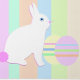 A simple, and pretty design with a cute Easter Bunny, and 2 pink, and yellow Easter eggs.