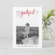 感謝祝の季節は、この感謝祭モダンの写真カードではっきりしたす「感謝」のタイポグラフィと家族の写真お気に入りの。クリーンなミニマルデザインは、友人や愛する人々に暖かい休暇の願いを送るのに最適である。個人カスタマイズtouchの家族の名前と年家族スタイリッシュのための選択は、美シンプル的な美モダン。感謝祭の挨拶、休日の写真カード、または秋家族の更新に最適。