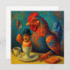 Hard-Boiled Human - Fowl Play at Breakfast. A surreal, witty twist on the breakfast table where a flamboyant chicken turns the tables on humanity. In a world obsessed with control, this image humorously reminds us that nature quietly sustains, mocks, and ultimately outlasts our attempts at dominance. It’s a bold, colourful piece balancing absurdity with a serious reflection on our place in the natural order.