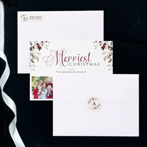 Make your Christmas envelopes stand out with this elegant and modern Holly Berry Wreath Monogram Letter Classic Round Sticker. These monogram Christmas envelope seals feature a watercolor holly berry wreath, perfect for adding the finishing touch to your holiday cards and gifts.