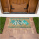 Honuの海の三倍のカメのハワイの樹皮布のティール(緑がかった色) ドアマット