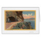 カリフォルニア州タホ湖 – View of Cave Rock Tunnel from Hwy - Lake Tahoe, CA was created in 1937.この画像はカリフォルニア州タホ湖の風景を描いている。
