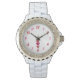 I Love You Women's Rhinestone White Enamel Watch 腕時計