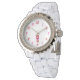 あなたは私のバレンタインデースケッチとロマンチックなスケッチを賞賛することができ、私は赤とピンクのハートの"私はあなたを愛する"と呼ばれストライプのる、この女性のライン石の白いエナメル時計に追加された。