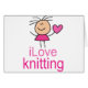 I愛編み物のスローガンを用いるピンクの最愛の棒の姿の女の子。 編む会員のためのかわいいギフト。