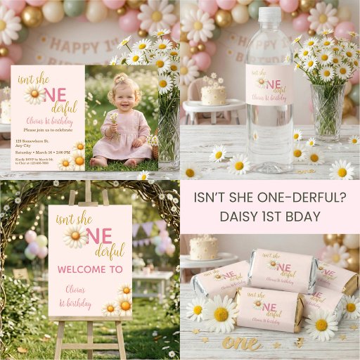 Isn't She One-derful 1st Birthday Daisy Photo 招待状