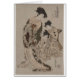 この日本のな色刷はIsoda Koryusai (1764年- 1788年)によって18世紀になされました。 日本語の名前は次のとおりです: "Hinagata Wakana Hatsu無しMoyo"。 それでは私達は完全にかわいらしい花のデザインの美しく設計されていた長く流れる着物で服を着る日本のな女性および彼女の2人の付き添い人に、会います。 女性はまた上流に泳いでいる魚を描写するコートのかスカーフをまたは滝への種類を運んでいます。 日本のな芸術家はベージュ、茶色このプリント-白および黒で大抵薄い色を使用しました。 あったように日本Isoda Koryusaiのカスタムは漢字および平仮名(日本のな執筆)の彼の名前に署名しました。