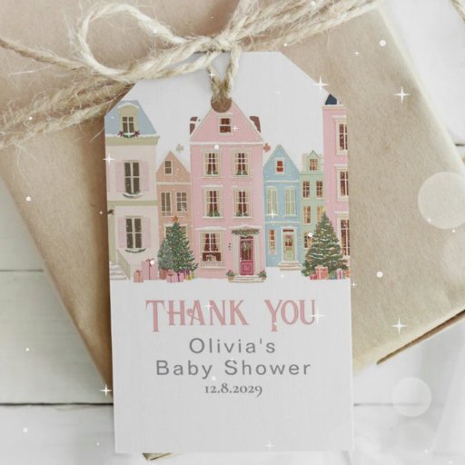 It takes a village Christmas houses Pink Whimsical label