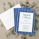 A modern yet timeless wedding rsvp card featuring light yellow and blue stripes that evoke warmth and sophistication. The design is elevated with blue typography, striking a perfect balance between minimalist clarity and elegant Italian flair. The overall aesthetic whispers old money elegance—refined, understated, and effortlessly chic. The striped palette recalls sunlit Italian villas, while the vintage typography adds a touch of aristocratic charm. Together, these elements create an invitation that is minimalist yet luxurious, romantic yet dignified, and unmistakably Italian in spirit.