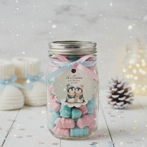 Featuring the sweet twin penguin chicks design, this pillow is perfect for the "It's Twins" winter theme. It provides charming décor for the event and transitions beautifully into the baby's room.