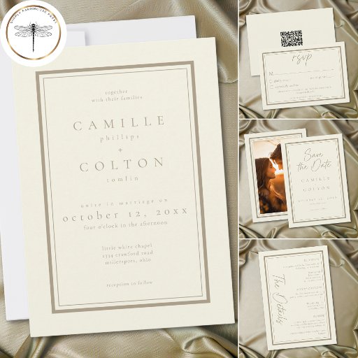 Ivory Cream Minimalist Frame Wedding セーブザデート