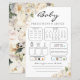 Inspired by soft ivory peonies and a calm garden palette, this predictions card adds a sweet and elegant touch to the celebration. The delicate florals frame a clean, easy-to-fill layout where guests can share their guesses, wishes, and heartfelt advice for the parents-to-be.