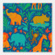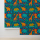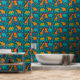 Turn your walls into a playful adventure with this jungle animals wallpaper. Featuring cheerful elephants, lions, giraffes, monkeys, and rhinos surrounded by lush greenery and bright butterflies, this design bursts with life and color. The deep blue background makes the vibrant shades of orange, green, and teal pop, creating a fun and immersive scene.