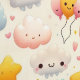 Create the dreamiest kawaii nursery wall with this whimsical pastel wallpaper. A seamless repeating pattern of a white kawaii bunny, smiling teal clouds, glowing stars, floating hearts, mini balloons, kawaii characters, and pastel sparkles fills a warm cream background in dreamy teal, pink, and yellow — soft, joyful, and gender-neutral. Perfect for nursery feature walls, kids' bedrooms, playrooms, and reading rooms. The most magical room in the house starts here.