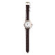 テンプレート空白の(バイナリ顔)、女性の完璧な正方形の茶色の革のストラップウォッチ。写真Copyright (C) Kenneth Kenji Yoncich.All Rights Reserved.