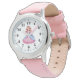 Kids classic leather strap watch shown in pink with a cute little princess print.