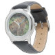 Kids classic black leather strap watch shown with a wildlife cheetah's photo print.
