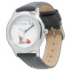Kinder Edelstahluhr mit schwarzem Lederarmband Uhr 腕時計