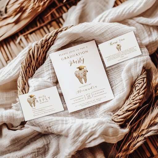 Celebrate the next chapter with a beautifully refined graduation design featuring a kintsugi-inspired tooth illustration adorned with soft florals and warm gold tones. This elegant layout highlights the graduate’s name and event details in a timeless, minimalist style that feels sophisticated and personal. Perfect for dental school graduations, hygiene programs, or anyone who wants a modern professional aesthetic with an artistic twist.
