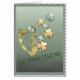 シャムロックのボーダー、金ゴールドおよび緑の金ハープそしてシャムロックと飾られる緑の背景およびアイルランドの挨拶"Lá Fhéile Pádraig" -カードの内部、ユニークなセントパトリックの´s日の挨拶を送る完全な方法へ文字を加えることによってcutsomize!