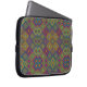Laptop sleeve featuring a colorful, intricate geometric pattern of diamonds and squares in blue, green, yellow, and pink. The design conveys a vibrant, playful tone.