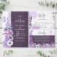 A romantic purple floral wedding save the date card featuring soft watercolor flowers in lavender, blush, and white, accented with delicate botanical line art and a graceful butterfly. The elegant vertical layout with a deep plum panel creates a refined and feminine look, making it perfect for announcing your wedding date in style. A beautiful choice for garden weddings, spring weddings, summer celebrations, and coordinated floral wedding stationery suites.