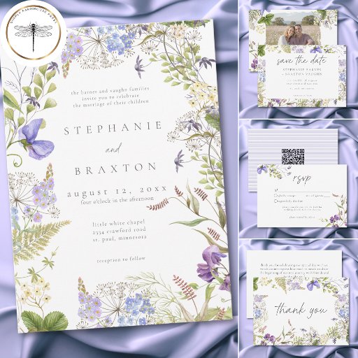 Announce your day with this Lavender Wildflower Garden Romantic Wedding save the date photo card, featuring delicate watercolor florals on your paper white background. Perfect for a spring or summer garden wedding, this beautiful design offers a whimsical and natural aesthetic. This romantic invitation is fully customizable and sets a lovely, soft tone for your celebration. Created by Simply Farmhouse Press.