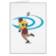 ヘルメット、パッドおよびラクロスの赤くおよび黄色のラクロスのユニフォームの連続したラクロスプレーヤーとのシンプルなラクロスのデザインは付きます! 青い渦巻の背景! 素晴らしいLAXのワイシャツおよびギフト!