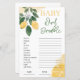 Featuring vibrant lemon illustrations and a fresh, citrus-inspired design, our game cards bring a burst of color and fun to your event. The cheerful yellow accents and playful fonts make this game a delightful addition to any baby shower decor.