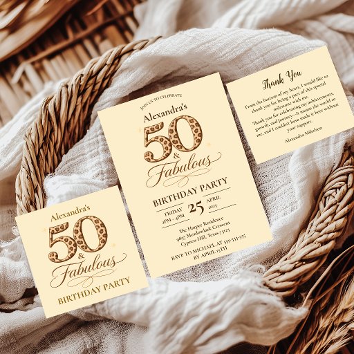 Leopard Neutral 50 & Fabulous Birthday 招待状
